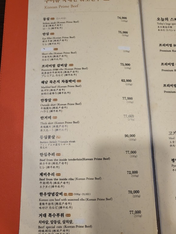 거대갈비 맛집은 다양한 메뉴를 제공하여 손님들의 다양한 취향을 만족시킵니다. 대표적인 메뉴로는 부드러운 프리미엄 갈비살과 육즙이 가득한 꽃등심, 안창살 등 여러 다양한 한우 부위가 준비되어 있으며, 이 외에도 다양한 부위의 고기를 맛볼 수 있습니다. 또한, 친절하고 신속한 서비스로 손님을 맞이하여 편안한 식사 분위기를 조성합니다. 그리고 육전과 육회, 장조림은 서비스로 나와 기분 좋게 먹을 수 있습니다.