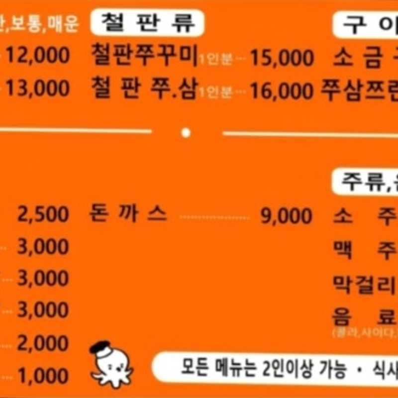 쭈꾸미 철판볶음 (1인 11,000원)