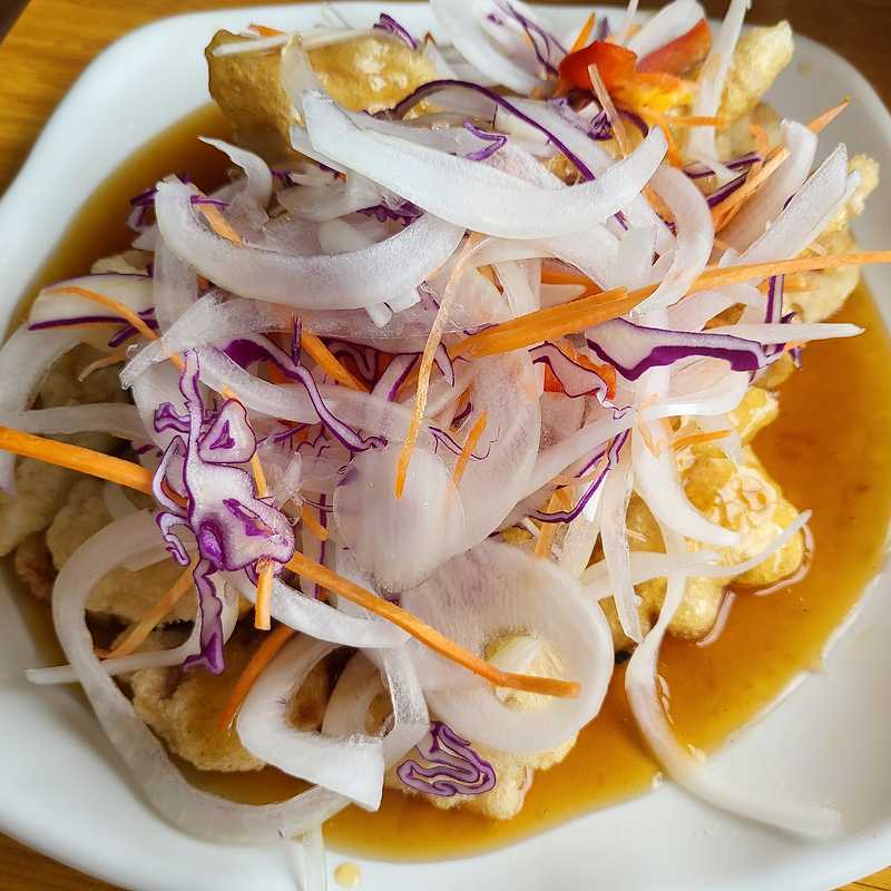 낙지, 오징어, 홍합, 새우까지 가득 들어 있어 해물 본연의 맛과 향이 그대로 녹아있고, 얼큰하면서도 깊은 국물 맛이 속을 시원하게 만들어 줍니다. 특히 겨울철 강촌에서 먹는 뜨거운 해물짬뽕 한 그릇은 등산 후 피로를 날려줄 최고의 선택! 고춧가루의 맵기와 육수의 감칠맛이 조화를 이루며, **단순히 맵기만 한 짬뽕이 아닌, ‘풍미 짬뽕’**이라는 표현이 더 잘 어울리는 맛입니다.