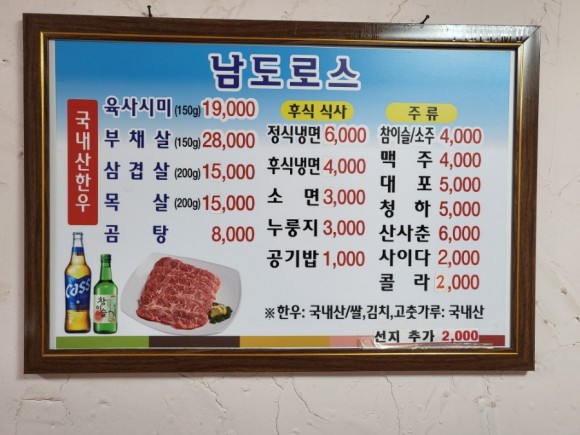 남도로스 정육식당에서는 다양한 고기 요리를 즐길 수 있습니다. 대표적인 메뉴로는 육사스미, 삼겹살등이 있습니다. 이곳에서 제공되는 고기는 신선하고 품질이 우수하여, 맛과 풍미를 최대한 살려낼 수 있습니다. 또한, 고기와 어울리는 다양한 야채와 소스로 맛을 더욱 풍부하게 즐길 수 있습니다. 그리고 가격 또한 매우 착합니다.