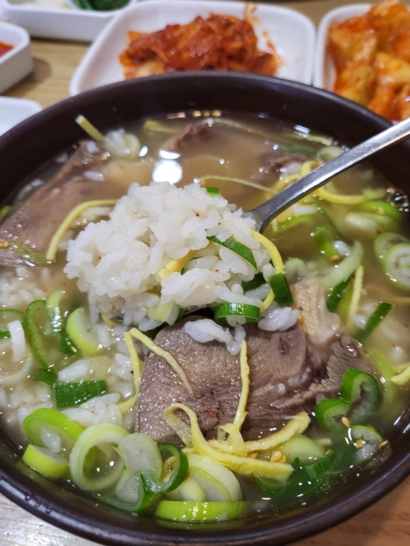 토렴식으로 조리하여 뚝배기 안에 밥이 있는 국밥 형태로 제공되는 것이 특징 맑고 깔끔한 국물과 잘 익은 묵은지, 깍두기 등의 밑반찬이 유명함