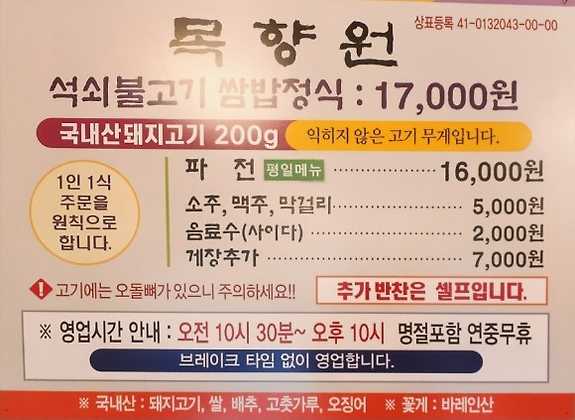 목향원의 내부는 아늑하고 편안한 분위기로 꾸며져 있습니다. 가족 단위 손님은 물론 친구들과 함께 오기에도 적합한 공간입니다. 자연 소재로 꾸며진 인테리어는 식사를 하는 동안 힐링을 제공합니다. 또한, 야외 테라스도 마련되어 있어 날씨가 좋은 날에는 바깥에서 식사를 즐길 수 있습니다. 이곳에서의 식사는 단순한 식사가 아닌, 소중한 사람들과의 시간을 더욱 특별하게 만들어 줍니다.