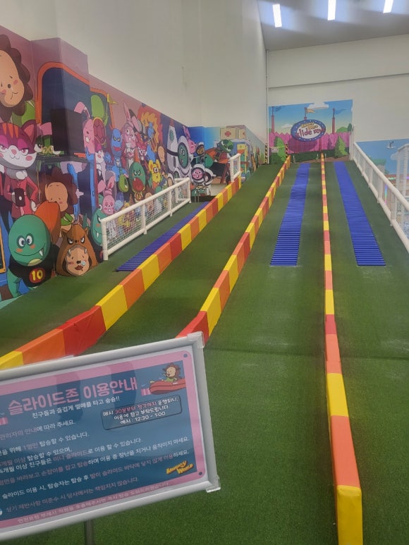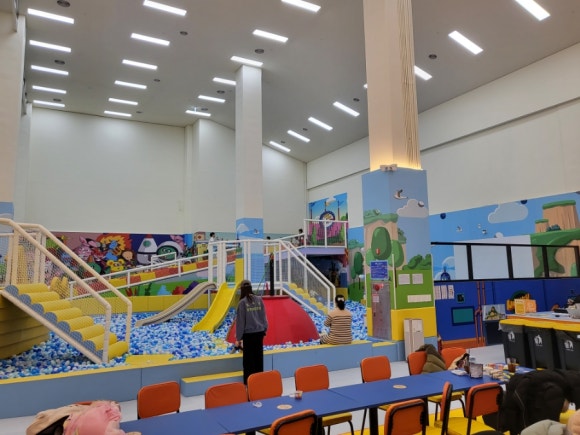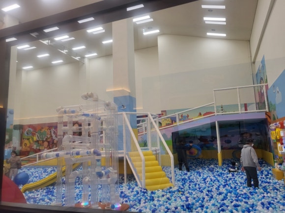 1) 대형 놀이 기구: 실내에 설치된 대형 미끄럼틀, 트램폴린, 볼풀 등은 아이들이 마음껏 뛰어놀 수 있는 공간을 제공합니다. 특히, 안전을 최우선으로 고려한 설계와 관리로 부모님들도 안심하고 아이들을 맡길 수 있습니다.