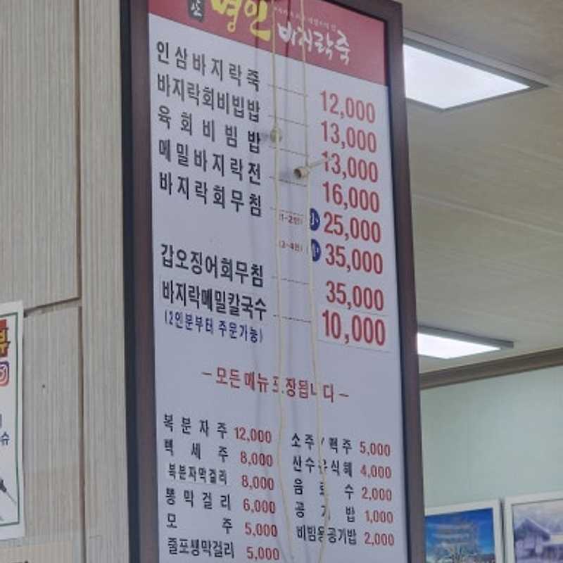 1) 기본 바지락죽 1인분: 10,000원 (2025년 기준)