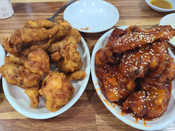 이곳의 대표 메뉴는 바로 '후라이드 치킨'과 '양념치킨'입니다. 후라이드 치킨은 바삭한 껍질과 촉촉한 속살로 많은 사람들의 입맛을 사로잡고 있으며, 양념치킨은 매콤 달콤한 소스가 입혀져 있어 중독성이 강합니다. 또한, 사이드 메뉴로 제공되는 감자튀김과 소시지도 인기가 많습니다
