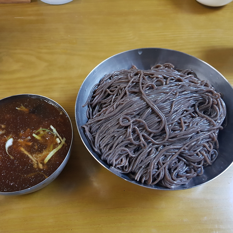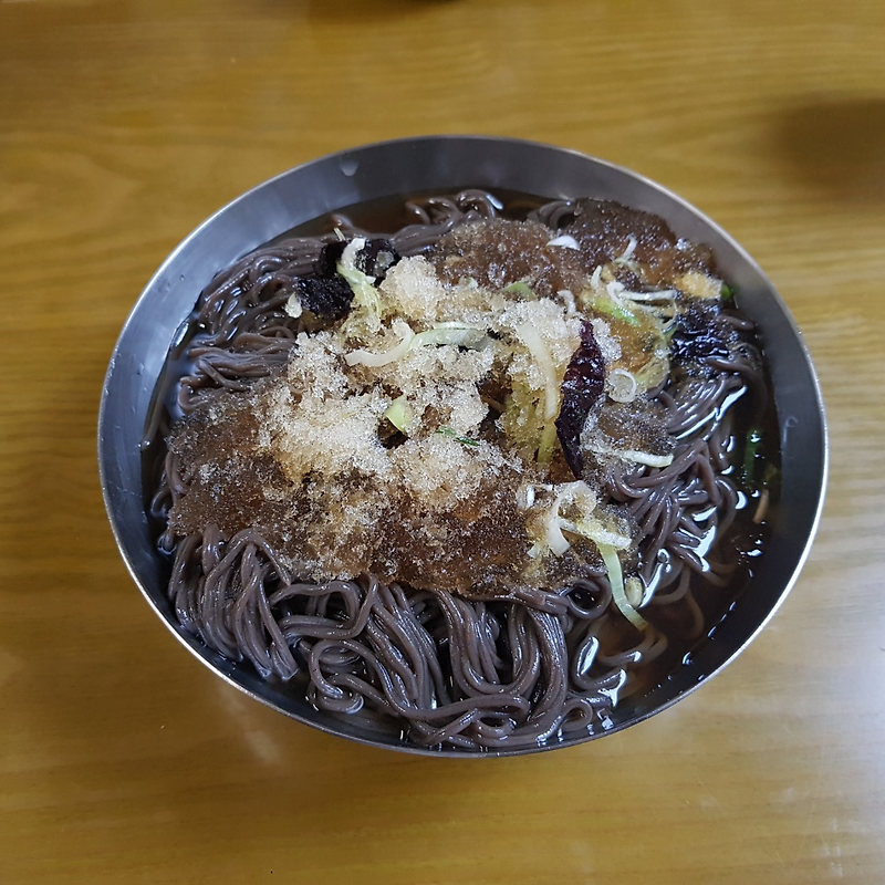 차가운 육수에 메밀면을 말아낸 대표 메뉴.