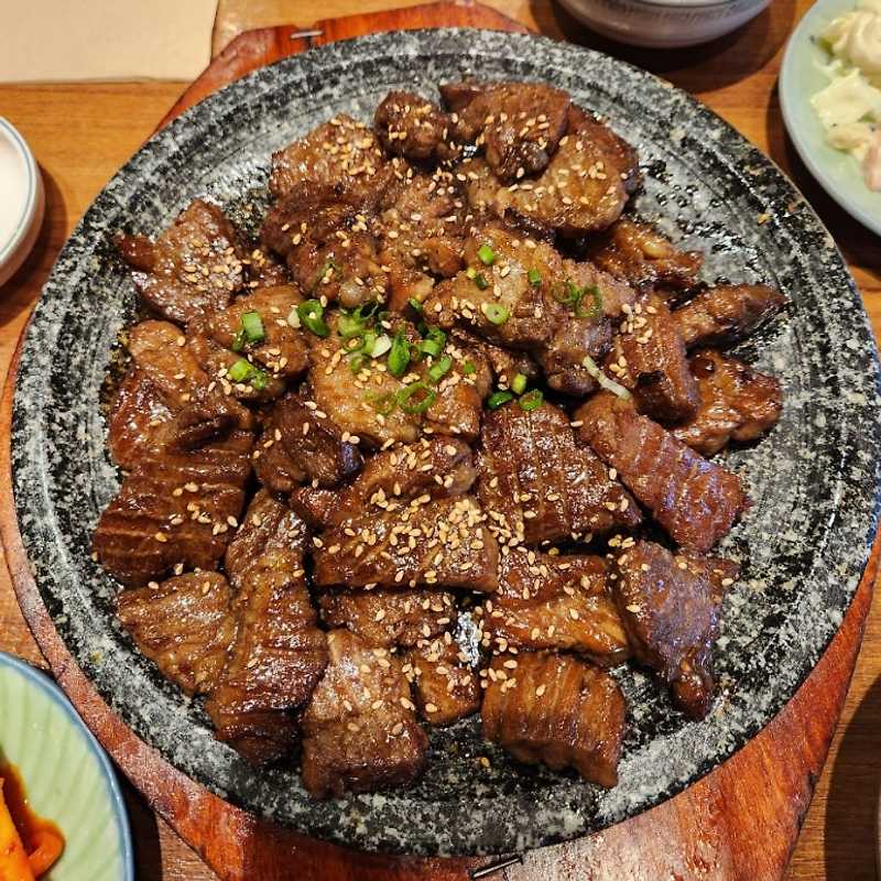 숯불에 정성스럽게 구워져 나오는 석갈비는 불향이 살아 있고, 고기 속 육즙이 풍부해 한입 먹는 순간 만족감이 크다.
