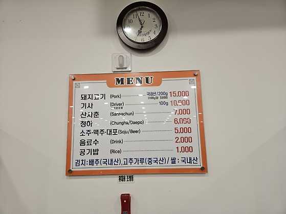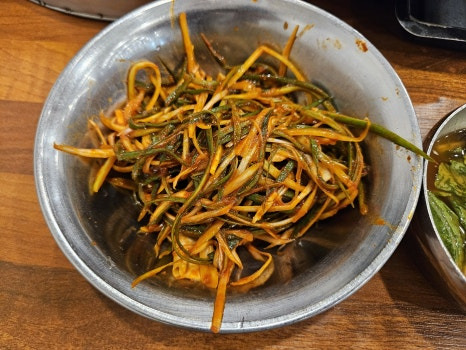 돼지고기: 이곳의 대표 메뉴로, 고기를 불판에 구워서 먹는 요리입니다. 부드러운 식감과 깊은 맛이 일품이며, 함께 제공되는 파채와의 조화가 매력적입니다.