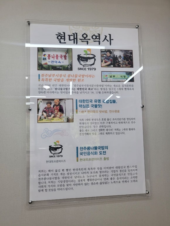 현대옥은 오랜 역사를 가진 전주 지역의 유명한 먹거리 브랜드입니다. 1950년대부터 시작된 이곳은 전통적인 한식의 맛을 고수하며, 특히 콩나물국밥으로 많은 사랑을 받아왔습니다. 전주 지역에서의 오랜 경험과 노하우를 바탕으로, 현대옥은 고객들에게 최고의 콩나물국밥을 제공합니다.