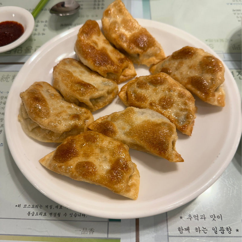 이 집 군만두는 겉은 바삭하고 속은 촉촉한 정석적인 스타일로, 한 입 베어 무는 순간 육즙이 살아 있다.