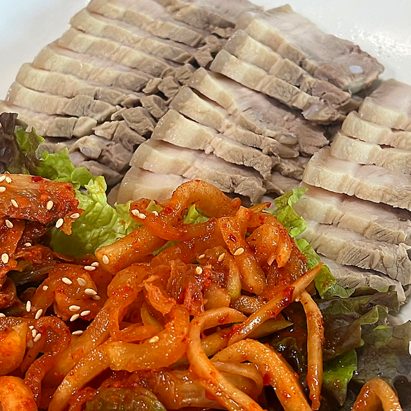 보쌈 한 점 위에 구수한 두부 한 숟갈, 그리고 살짝 올려진 묵은지 한 줄기. 이 조합은 단순한 반찬을 넘어서, 한국인의 입맛에 가장 근접한 궁합입니다.