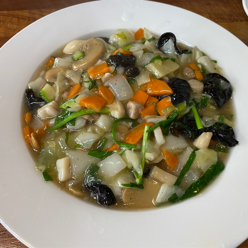 첫 번째는 바로 '물짜장'입니다. 일반 짜장면과는 달리 춘장을 사용하지 않고 각종 해산물과 채소를 볶아 전분으로 걸쭉하게 만든 소스에 비벼 먹는 이색적인 메뉴입니다. 얼큰하면서도 시원한 국물 없는 짬뽕 같은 느낌이랄까요?